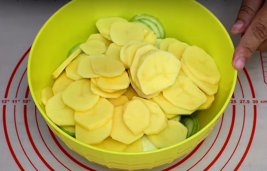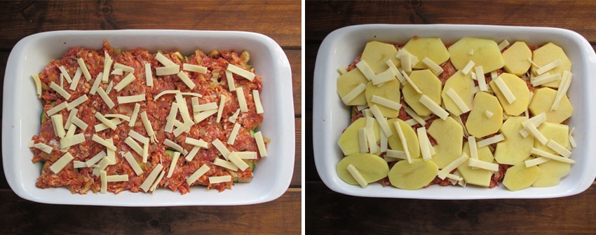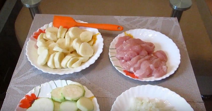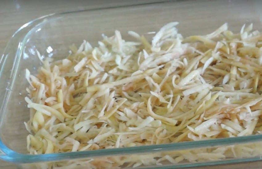 Выкладываю в форму слоями, и каждый слой поливаю соусом.