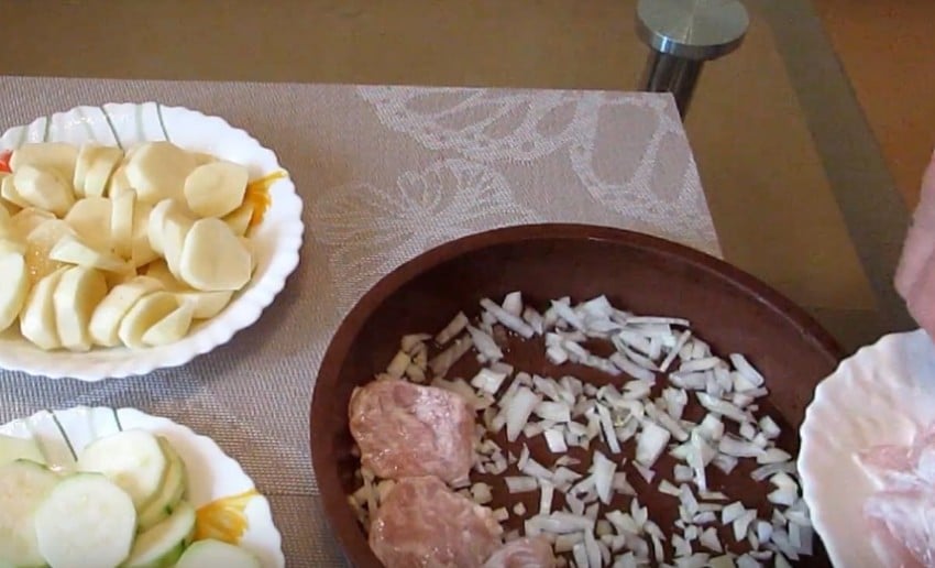 Перемешайте эти овощи, посолите и, изредка помешивая, обжарьте до полуготовности на среднем огне.