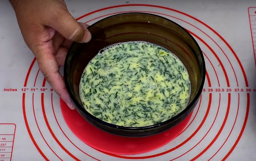 Вот такая красота у меня получается. Я добавляю соль, черный молотый перец, можно любые травы и приправы, по желанию. Все перемешиваю. Начинка готова.