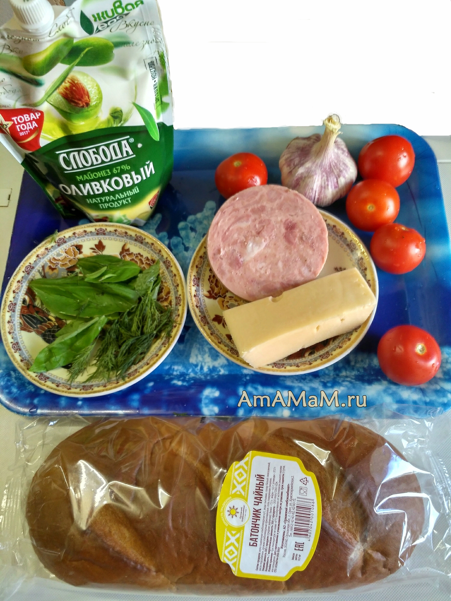 6. Готовые изделия выложить в жаропрочную форму. Смешать оставшуюся сметану с майонезом и промазать каждое изделие сверху.