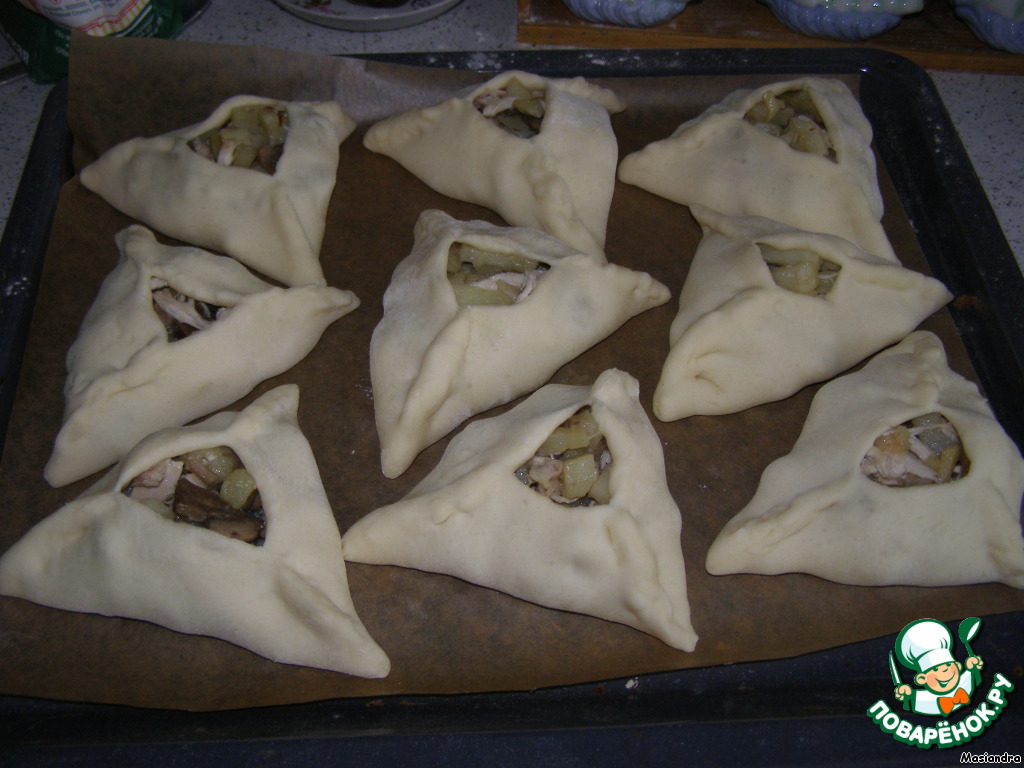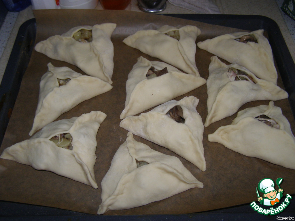 Раскладываем наши треугольные пирожки по тарелкам и подаем на стол.