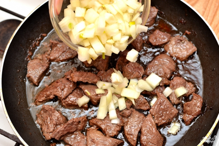 2. Мясо лучше обжаривать на растительном масле, чтобы оно не пригорело.