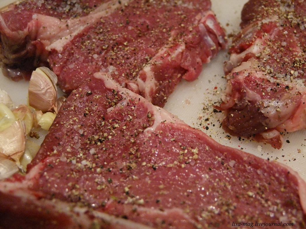 - Стейк Нью-Йорк может готовиться как на кости, так и без нее. У него насыщенный вкус и аромат.