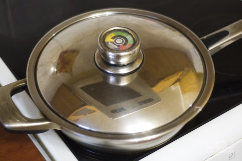 - За это время, пока готовится мясо, можно почистить картошку и убрать ее в кастрюлю с холодной водой, чтобы она не успела потемнеть и заветриться.