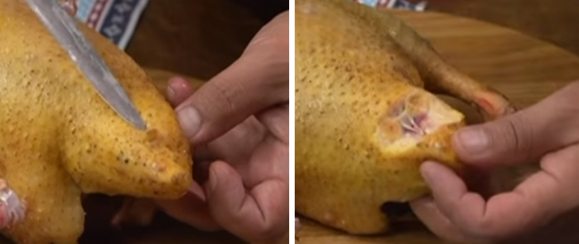 - отрежьте шею у гуся, оставив с краю немного шкурки, чтоб можно было зашить отверстие.