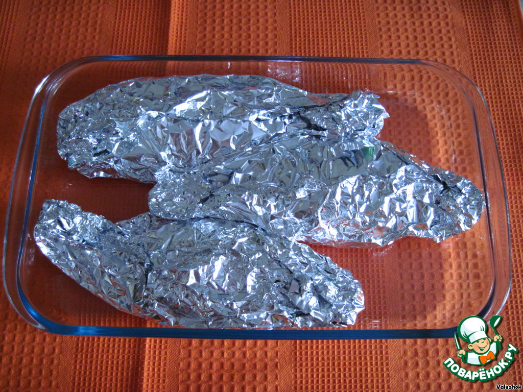 Прикрываем форму фольгой, ставим в нагретую до 180-190 градусов духовку на 50 минут.