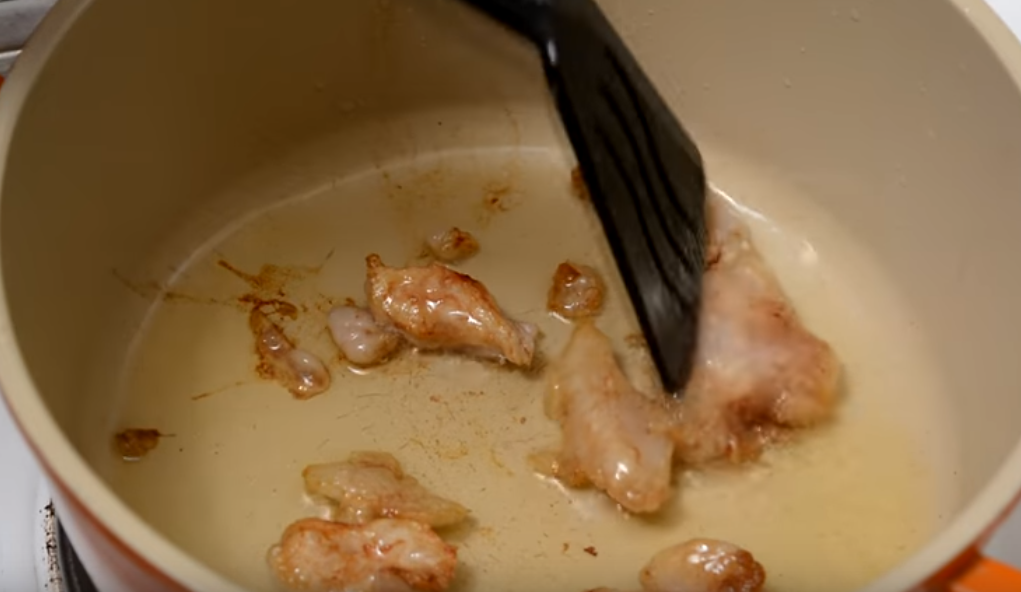 В сковороду наливаю немного растительного масла, обжариваю кусочки с двух сторон, моя цель не приготовить, а обжарить с двух сторон.