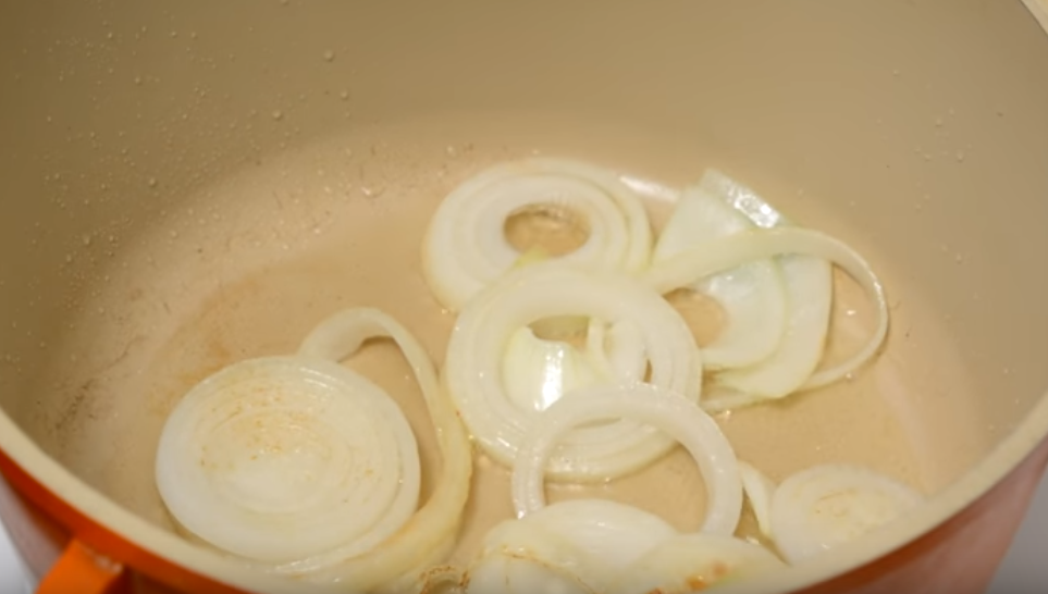 - Время от времени помешивая, обжариваем, пока лук не станет мягким и золотистым.