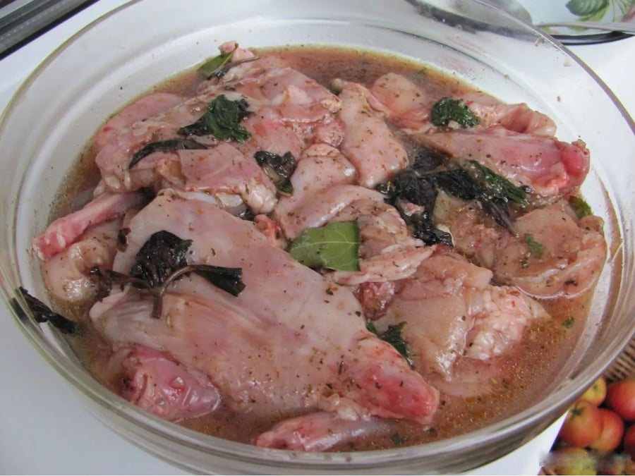 Маринование. Тушку маринуют в вине, но если требуется приготовить быстро и вкусно кролика ребенку, то делают маринад на кефире или отваривают мясо.