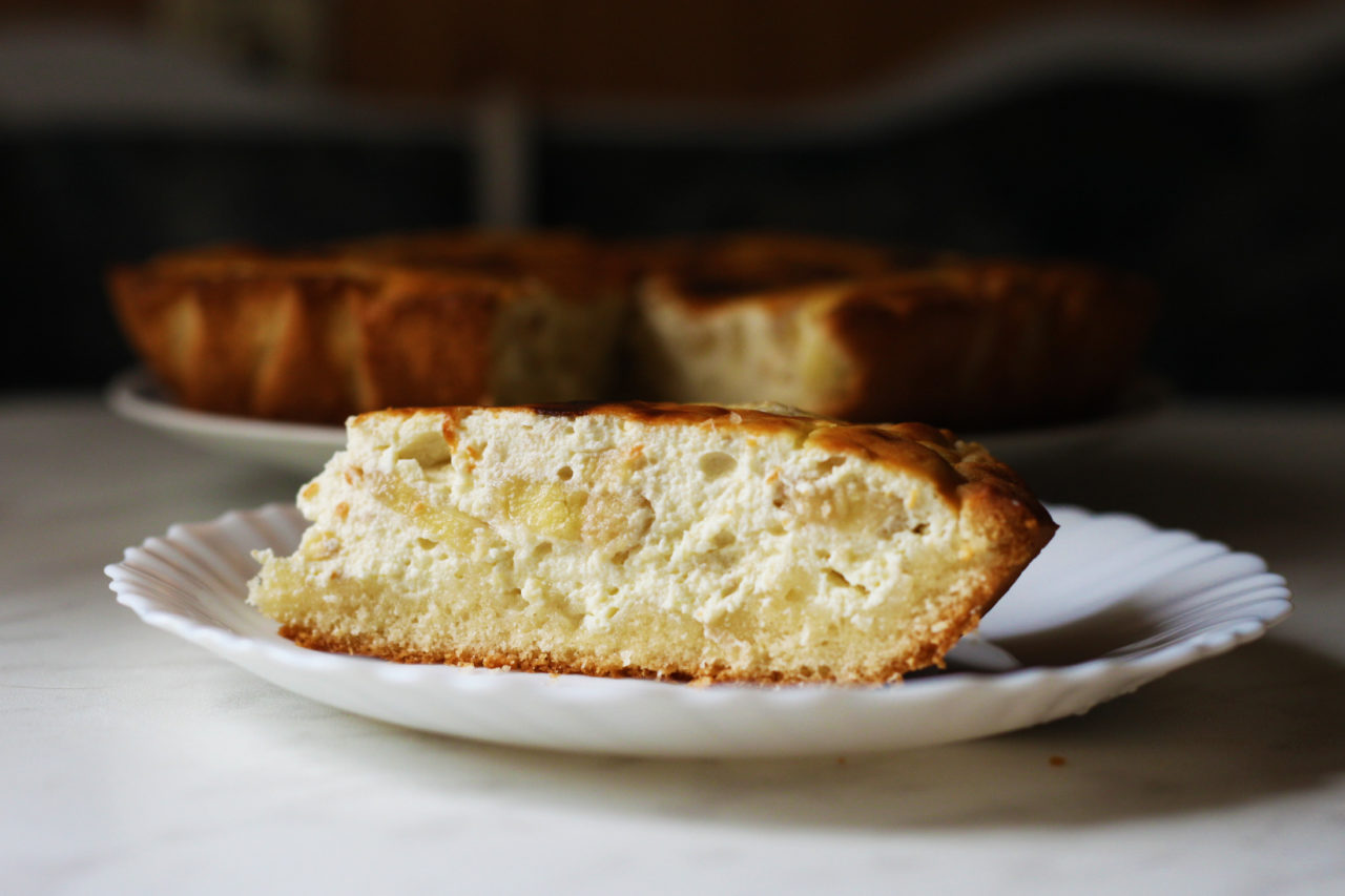 Песочный пирог с яблоками и творогом