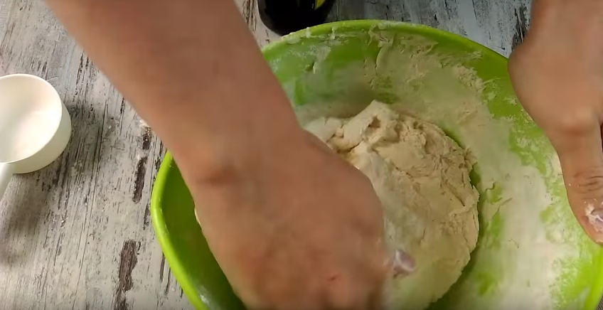 7.Во время вымешивания смажьте руки растительным маслом. Так будет легче работать с тестом, оно будет более послушное.