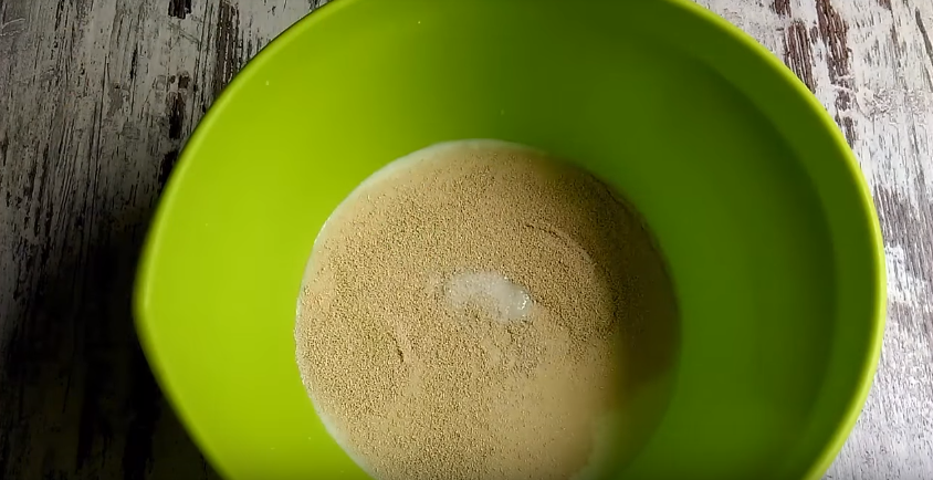 1.Для начала нужно активировать спящие грибки. Для этого в отдельном стакане растворите в теплой воде сухие дрожжи и мед. Оставьте на 5-10 минут, чтобы появилась пенная шапочка, которая будет свидетельствовать о качестве продукта.