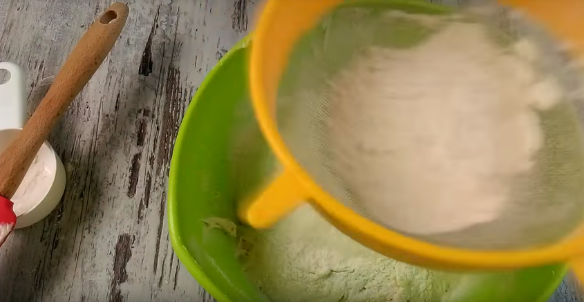 - Муку лучше просеять отдельно, так будет удобнее контролировать порцию при ее добавлении в основную миску. Ввести ее понемногу в тесто, сначала размешивать при помощи ложки.