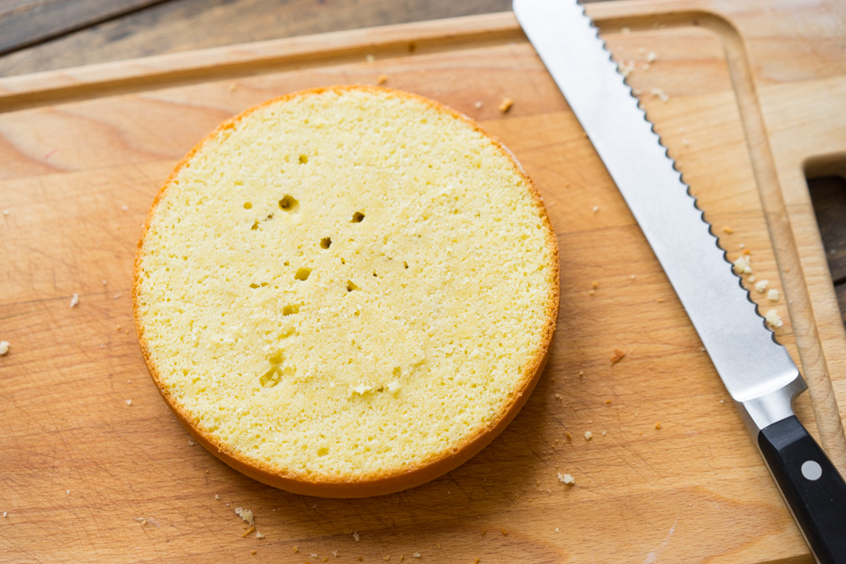 Очень часто при выпекании сверху образуется горка. А ведь для приготовления торта все коржи должны быть ровными, примерно одинаковой высоты. Чтобы избавиться от горки, верх бисквита можно срезать острым ножом с широким лезвием. Но чаще всего, если возвышенность небольшая, достаточно при остывании перевернуть бисквит кверху дном и разместить его на решетке. Через несколько часов он станет более ровным, чтобы его легко можно было разрезать на нужное количество коржей.