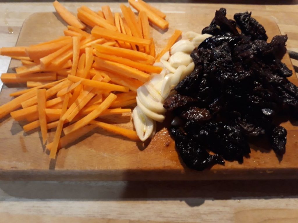 6. Добавляем порезанный соломкой чернослив, специи, солим по своему вкусу.