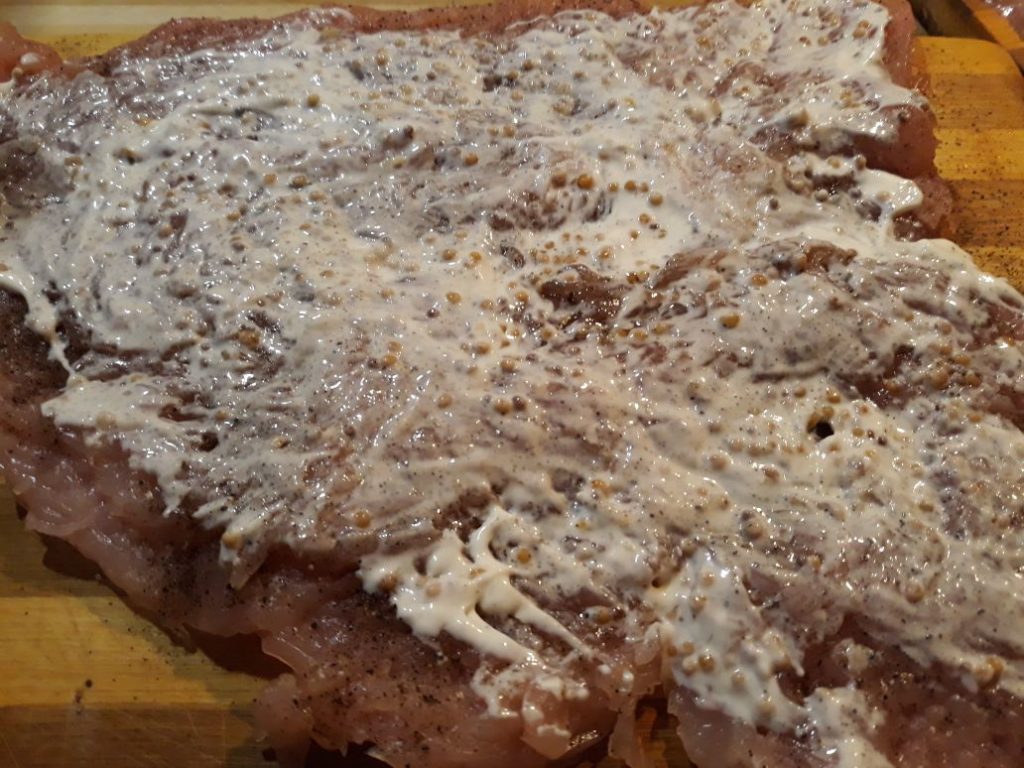 От бедра отделите кожу, удалите излишки жира. Также нам необходимо убрать косточку. Кусочки мяса слегка отбейте, но не переусердствуйте, они не должны быть слишком тонкими. Оптимальная толщина 1-1,5 см.