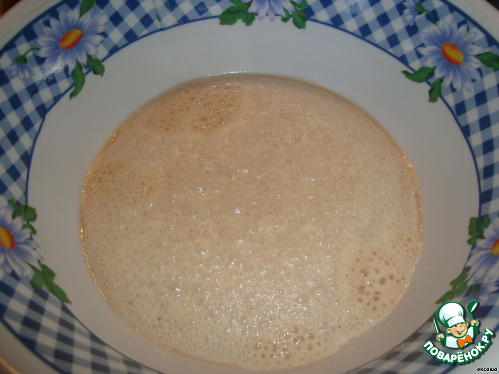 1. В заранее согретое молоко высыпаем дрожжи и перемешиваем смесь, чтобы они разошлись. Добавляем все сухие компоненты, кроме муки и тщательно смешиваем массу. Минуты через две вы заметите, что дрожжи начали набухать. Оставьте смесь на 10 минут для подхода.